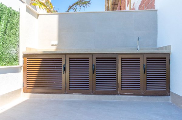 Diese atemberaubenden Villen sind in einem modernen Stil mit hochwertigen Oberflächen gebaut. Die Villen machen das Beste aus dem Leben im Freien in Spanien mit einem großzügigen privaten Garten und Terrassenbereich einschließlich eines privaten Swimmingpools. Der Außenbereich wird durch zwei private Sonnenterrassen für jedes Schlafzimmer im ersten Stock und eine große Dachterrasse von fast 40 m2 erweitert, auf der man den ganzen Tag die Sonne genießen kann. Jedes der Häuser verfügt über einen Grillplatz mit Spüle, der entweder im Garten oder auf der Sonnenterrasse installiert ist.