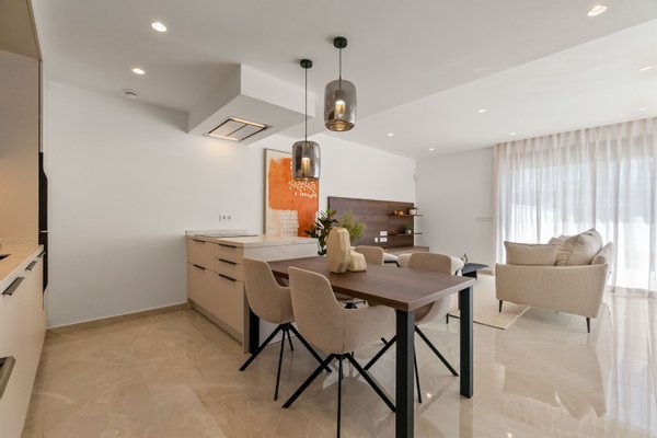 Diese atemberaubenden Villen sind in einem modernen Stil mit hochwertigen Oberflächen gebaut. Die Villen machen das Beste aus dem Leben im Freien in Spanien mit einem großzügigen privaten Garten und Terrassenbereich einschließlich eines privaten Swimmingpools. Der Außenbereich wird durch zwei private Sonnenterrassen für jedes Schlafzimmer im ersten Stock und eine große Dachterrasse von fast 40 m2 erweitert, auf der man den ganzen Tag die Sonne genießen kann. Jedes der Häuser verfügt über einen Grillplatz mit Spüle, der entweder im Garten oder auf der Sonnenterrasse installiert ist.