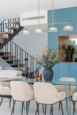 Die Innenaufteilung besteht aus einem geräumigen, offenen Wohn- und Essbereich mit großen Fenstern im gesamten Wohnbereich, die viel natürliches Licht hereinlassen und sich vollständig öffnen lassen, so dass Innen- und Außenbereich zu einer Einheit werden. Im Hauptwohnbereich befindet sich eine voll ausgestattete moderne Küche im amerikanischen Stil mit Mittelinsel und eine Gästetoilette. Im Erdgeschoss befindet sich außerdem ein großes Schlafzimmer mit Doppelbett und eigenem Bad sowie reichlich Stauraum im Kleiderschrank. Über die Innentreppe gelangt man in den ersten Stock, wo sich die beeindruckende Hauptschlafzimmer-Suite mit großem Schlafzimmer, eigenem Bad und begehbarem Kleiderschrank / Ankleidebereich befindet. Das Hauptschlafzimmer bietet mit den großen Fenstern, die den Blick auf die offene Landschaft freigeben, und dem Zugang zu einer privaten Sonnenterrasse besondere Merkmale.