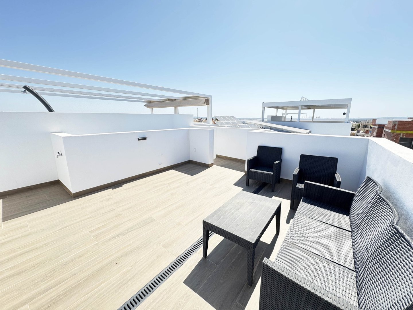 Die jetzigen Besitzer haben die Immobilie kaum benutzt und sie ist wie neu. Sie haben die Immobilie zu einem sehr hohen Standard möbliert und dekoriert, es kommt auch einschließlich Kanal-Klimaanlage, Sonnenkollektoren, Einbauschränke in allen Schlafzimmern, Jalousien in allen Räumen, Gegensprechanlage, mediterranen Stil Garten mit Kunstrasen und Kies, und einen privaten Parkplatz auf dem Grundstück.