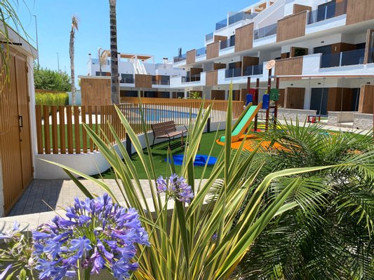 Pilar de la Horadada liegt sechsundsechzig Kilometer südlich von Alicante und ist einer der südlichsten Orte an der Orihuela-Küste im Süden der Costa Blanca. Pilar de Horadada ist ein lebhafter spanischer Badeort und verfügt über einen wunderbaren, mit der Blauen Flagge ausgezeichneten Strandabschnitt mit feinem Sand und klarem Wasser, der sich über vier Kilometer erstreckt, darunter Mil Palmeras und Torre de la Horadada mit einem schönen Jachthafen und einer Promenade. Das Stadtzentrum von Pilar de la Horadada ist nur wenige Gehminuten entfernt und bietet eine große Auswahl an Geschäften, Bars und Restaurants. Für Golffreunde ist die Wohnanlage nur wenige Kilometer vom Lo Romero Golf Resort entfernt und mehrere andere Golfplätze sind innerhalb von 15-20 Autominuten zu erreichen, darunter Villamartin Golf, Las Ramblas Golf, Real Club de Golf Campoamor und der preisgekrönte Las Colinas Golf and Country Club. Die Einkaufszentren La Zenia Boulevard und Dos Mares (San Javier) sind in 10 Minuten zu erreichen. Einfacher Zugang zu den beiden internationalen Flughäfen von Corvera - Murcia (30 Minuten Fahrt) und Alicante (45 Minuten Fahrt).