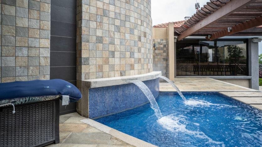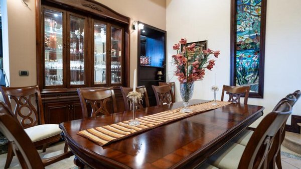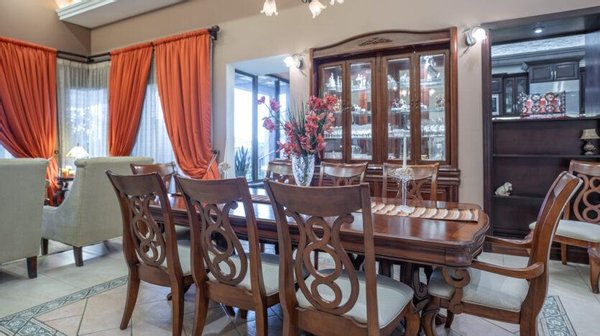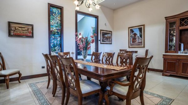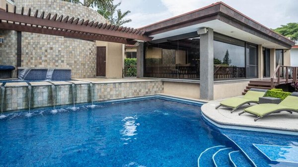 Esta casa es totalmente independiente de muy finos acabados y decoración de ensueño, con cochera y espacio para 9 carros, al entrar nos vamos a encontrar con puertas dobles amplias estilo gótico, con acceso a un recibidor muy amplio, con medio baño de visita de elegantes acabados, al final del pasillo encontramos una amplia sala comedor con techos altos con acabados en maderas finas y grandes ventanales decorados. La cocina con su propia Isla y doble plantilla empotrada eléctrica y de gas permite disfrutar de las comidas matutinas en el amplio desayunador. Además, muy amplios espacios de alacena y espacios para acomodar cada uno de los utensilios de la cocina. El área de lavado y tendido interno cerca de una habitación de servicio muy amplia con su propio baño. Además una sala de oficina muy grande que puede ser usada incluso como una habitación en caso de cerrar el espacio. Junto a la Sala encontramos una amplia sala de tv tipo cine con sistema de audio y sala de juegos grande. Todos estos espacios nos llevan a una terraza grande con una preciosa piscina con calentador de agua para un mayor disfrute con un puente que nos lleva a una terraza cerrada con bar y sala de estar para aprovechar las reuniones familiares. Junto a está terraza un amplio cuarto de visitas con walk-in-closet, baño completo amplio.