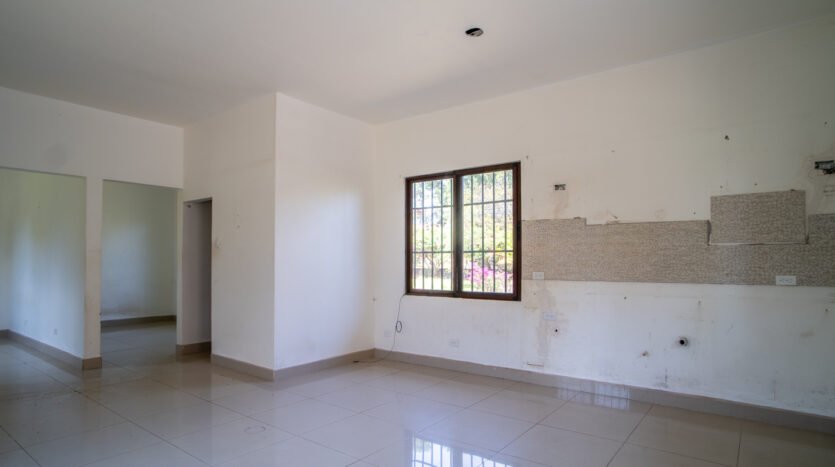 ✅ Sala, comedor, cocina de gran tamaño con acabados coloniales.