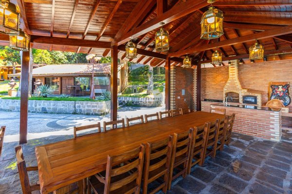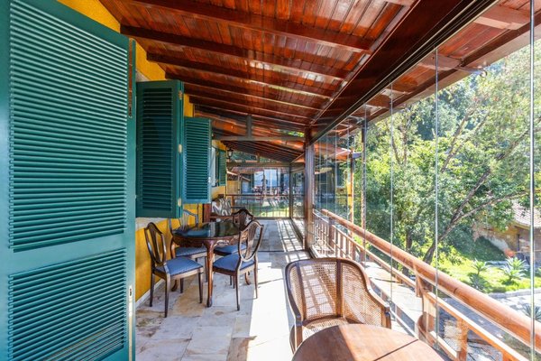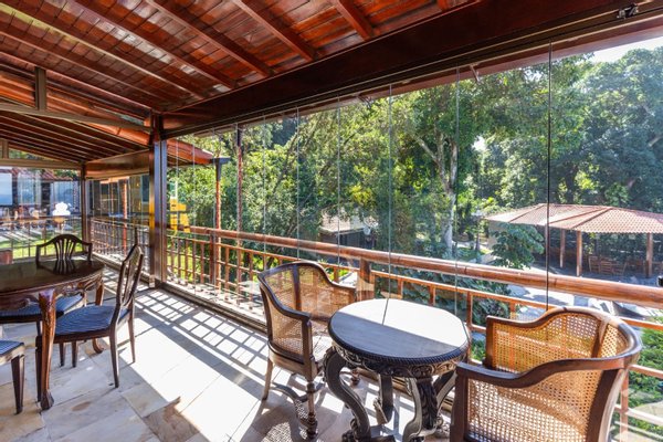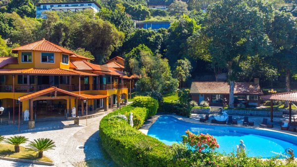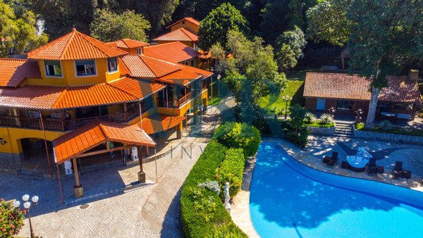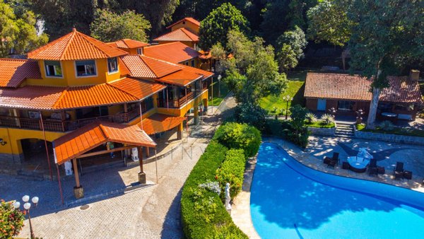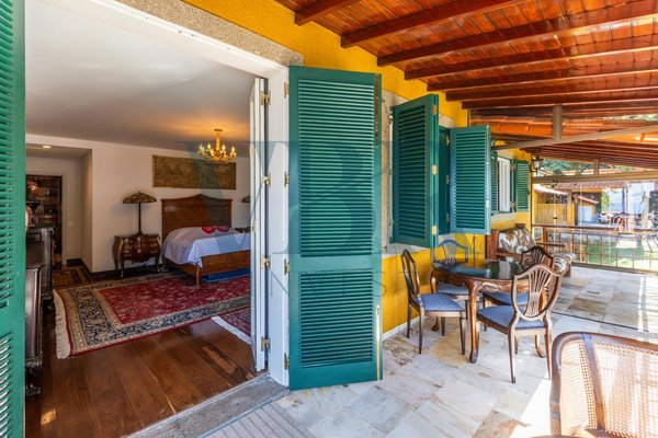 Das Haupthaus verfügt über einen Aufzug und Räume, die so konzipiert sind, dass sie Amplitude und Funktionalität vereinen. Im ersten Stock befinden sich das Hauptzimmer, das Büro, das Esszimmer, die Speisekammer und das Kaffeezimmer. Die zweite Etage verfügt über ein geräumiges Wohnzimmer, das mit einem großen Balkon mit spektakulärer Aussicht verbunden ist, vier Suiten - darunter zwei Master-Suiten - sowie ein zusätzliches Zimmer und eine Küchenzeile. Im dritten Stock befindet sich eine charmante private Suite.