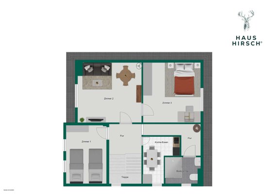 - OG: 3-Zimmer, Pantry-Küche, Duschbad