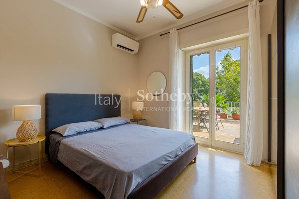 The interiors are spacious and well proportioned, lending themselves to a high-end contemporary reinterpretation. The entrance leads into a bright living room with dining area, complemented by three bedrooms, two bathrooms, and a separate kitchen. Each room benefits from direct access to the outdoor areas, including terraces and balconies, ensuring constant natural light and a continuous dialogue between indoor and outdoor spaces.