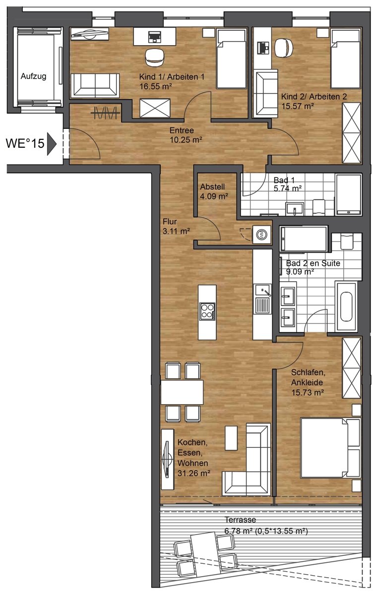 sind hochwertige und komfortable Eigentumswohnungen mit 3 bis 5 Zimmern und Wohnflächen zwischen