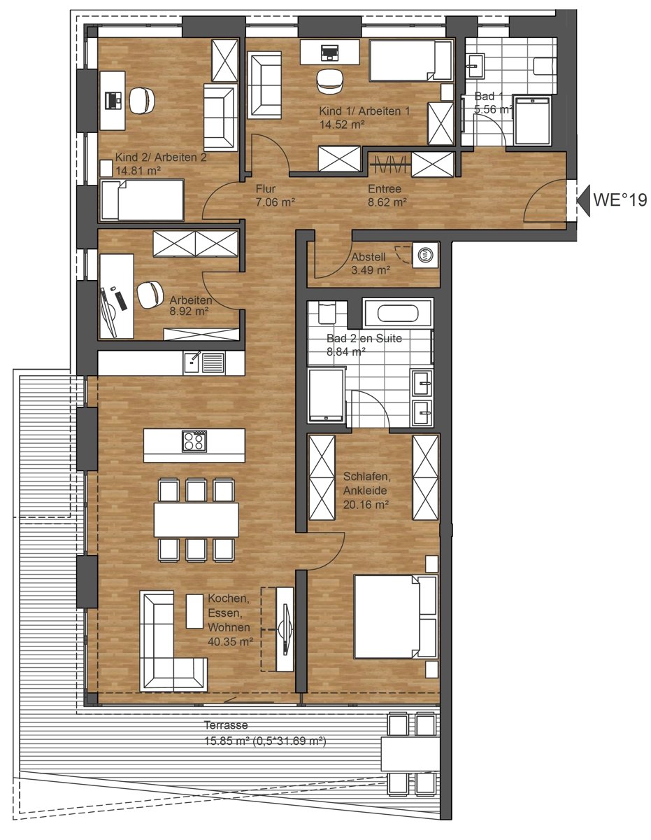 sind hochwertige und komfortable Eigentumswohnungen mit 3 bis 5 Zimmern und Wohnflächen zwischen