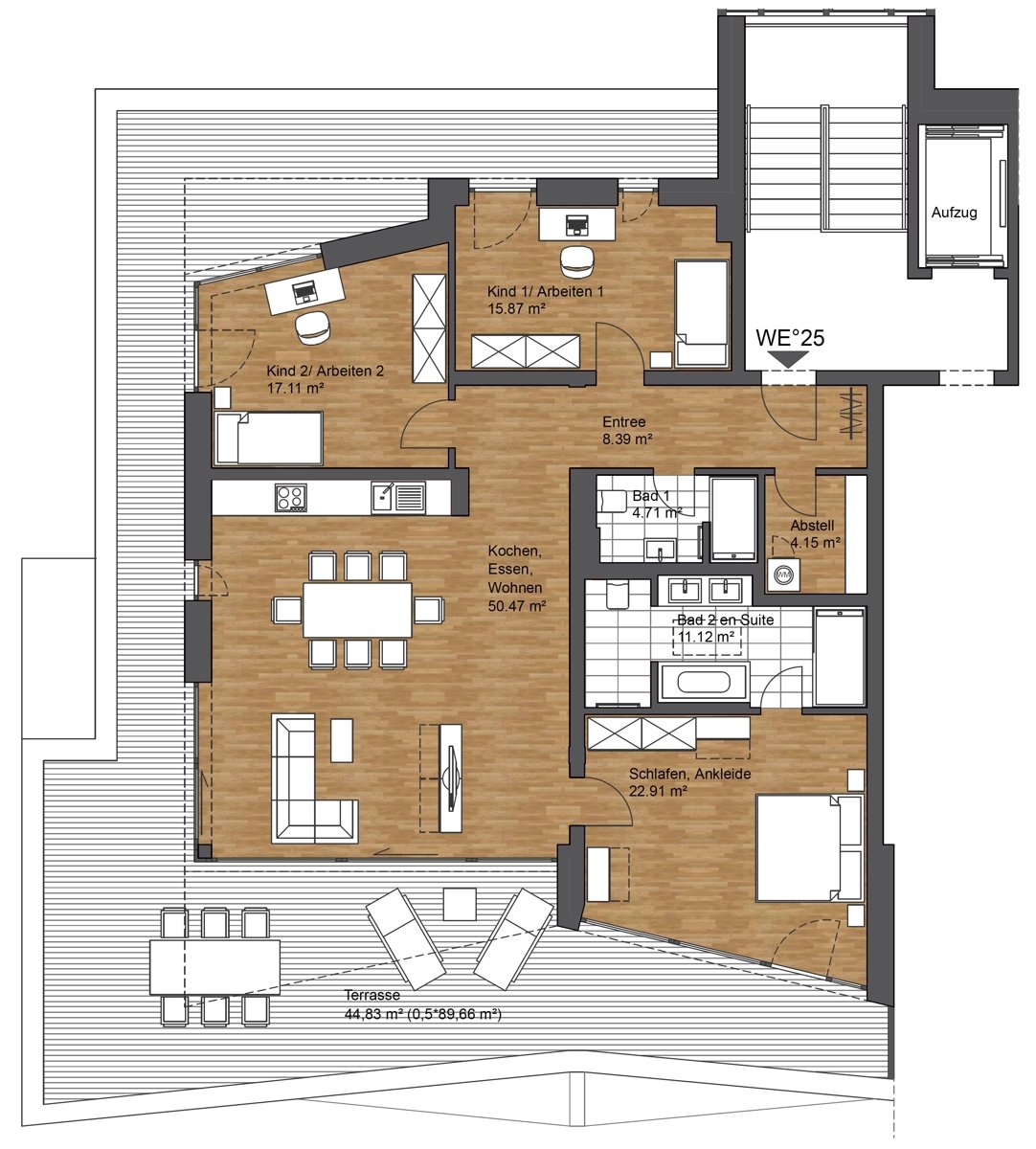 sind hochwertige und komfortable Eigentumswohnungen mit 3 bis 5 Zimmern und Wohnflächen zwischen