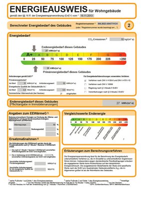 Endenergiebedarf beträgt 27.00 kwh/(m²*a).