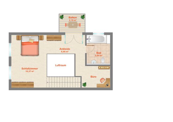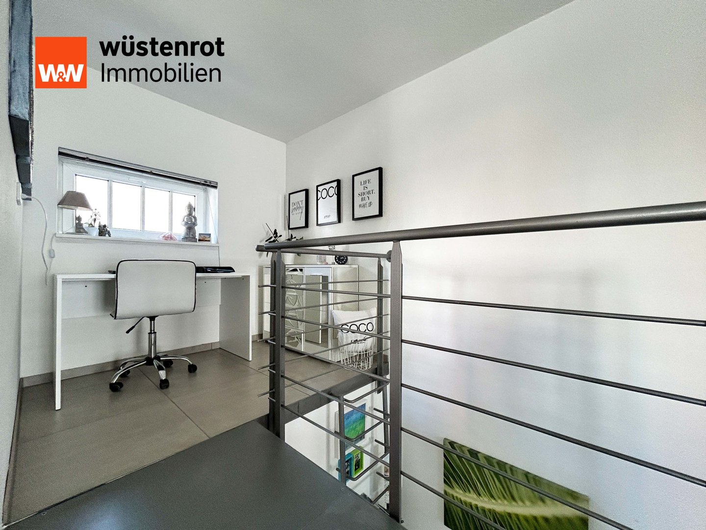 28,42 m² Galerie-Schlafzimmer mit Ankleidebereich und Bürobereich