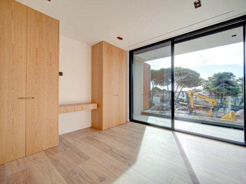 Im Obergeschoss sorgen zwei Master-Suiten mit begehbarem Kleiderschrank sowie zwei weitere Suiten für Privatsphäre und Komfort. Balkone verstärken das Gefühl von Licht und Weite.