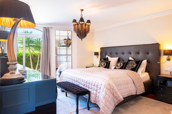 Die untere Ebene beherbergt das Hauptschlafzimmer mit Ankleide und einem komfortablen, privaten Bad. Drei weitere Gästezimmer, jeweils mit Bad en Suite, bieten Familie und Freunden gleichermaßen Rückzugsorte mit hohem Komfort.