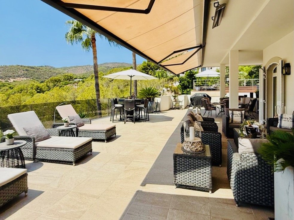 Diese großzügige Villa, erbaut im Jahr 2001 und 2017 umfassenden renoviert, vereint den authentischen mallorquinischen Charme mit modernem Wohnkomfort. In erhöhter Lage direkt am Golfplatz von Bendinat eröffnet sich ein erhabener Blick über das weite