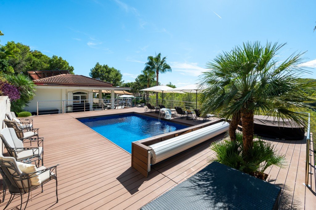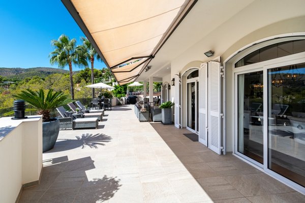 Diese großzügige Villa, erbaut im Jahr 2001 und 2017 umfassenden renoviert, vereint den authentischen mallorquinischen Charme mit modernem Wohnkomfort. In erhöhter Lage direkt am Golfplatz von Bendinat eröffnet sich ein erhabener Blick über das weite