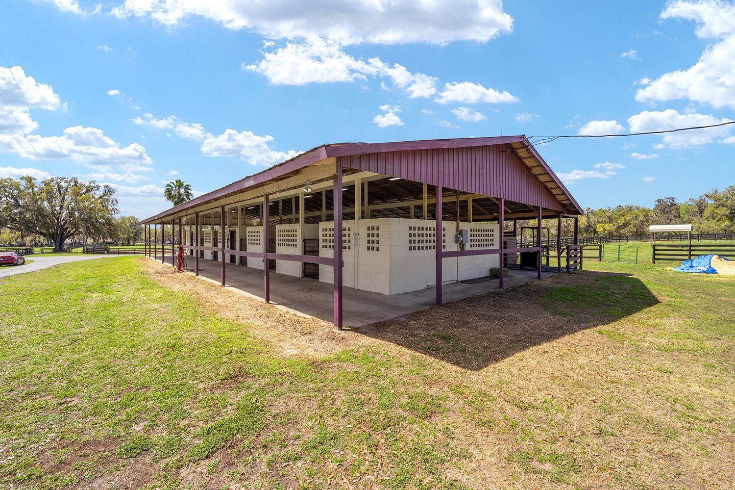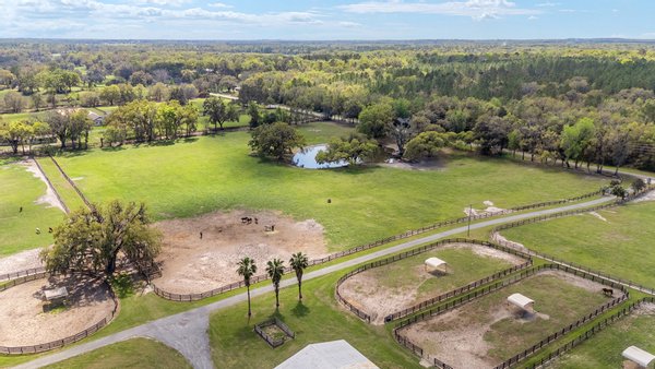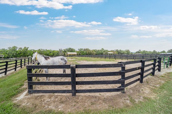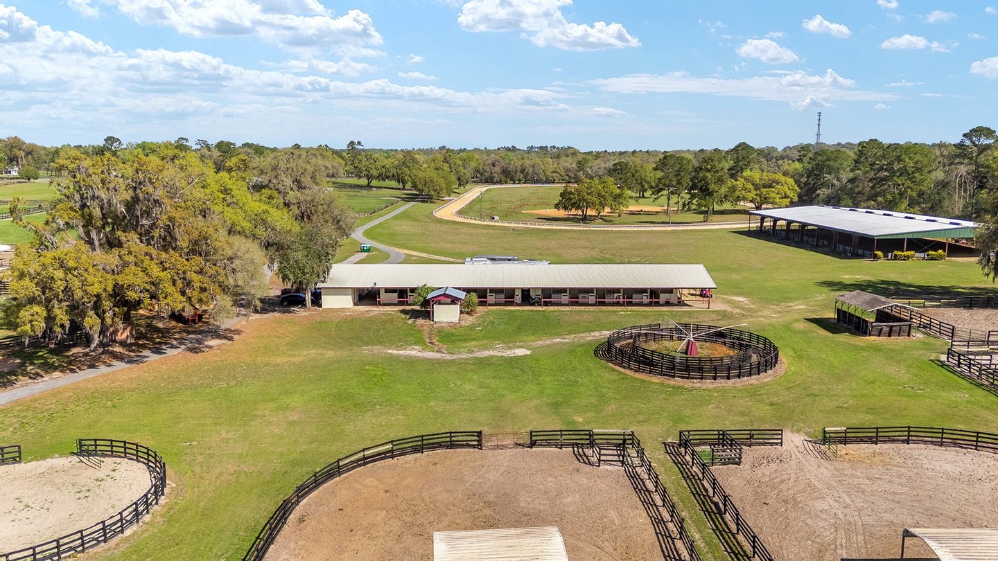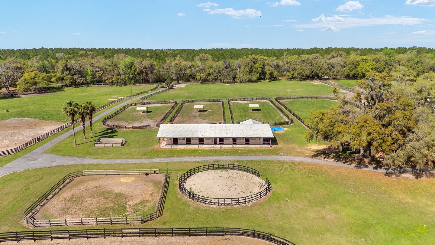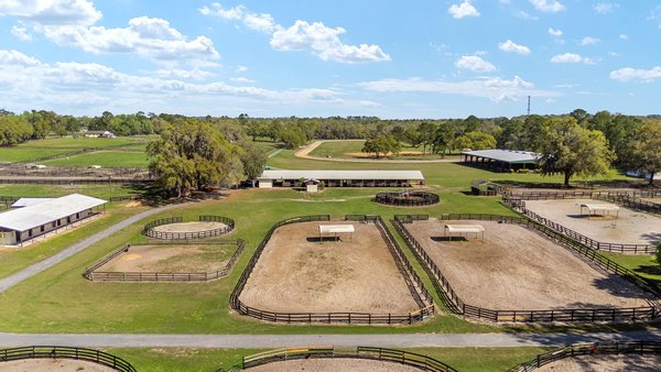 Entdecken Sie das raffinierte Landleben auf der Smokey Willow Farm, wo vier Residenzen 77 Hektar unberührtes Pferdeland neben dem World Equestrian Center ankern. Das durchdacht gestaltete, 3.200 Quadratmeter große Haupthaus verfügt über Kathedralendecken und ein offenes Wohnkonzept mit privaten Büroräumen und umlaufenden Fenstern. Der beheizte Salzwasserpool mit Sprungbrett bietet Entspannung im Resort-Stil, während zu den weiteren Unterkünften ein Cottage des Bauernhofmanagers, ein Mobilheim für das Personal und eine aktualisierte Schwiegersuite mit voll ausgestatteter Küche und Zugang zur Garage gehören. Jenseits des Wohnkomforts verbirgt sich ein Paradies für Reiter: ein schlüsselfertiger Betrieb mit 41 Boxen in drei Ställen, einer überdachten Arena, einer halben Meile Strecke und kompletten Zuchteinrichtungen mit speziellem Stuten- und Fohlenstall. Vom morgendlichen Kaffee mit Blick auf acht große Weiden bis hin zum abendlichen Schwimmen nach der Streckenarbeit bietet dieses Anwesen den Inbegriff des Reitlebensstils Floridas mit Weltklasse-Wettkämpfen vor Ihrer Haustür.