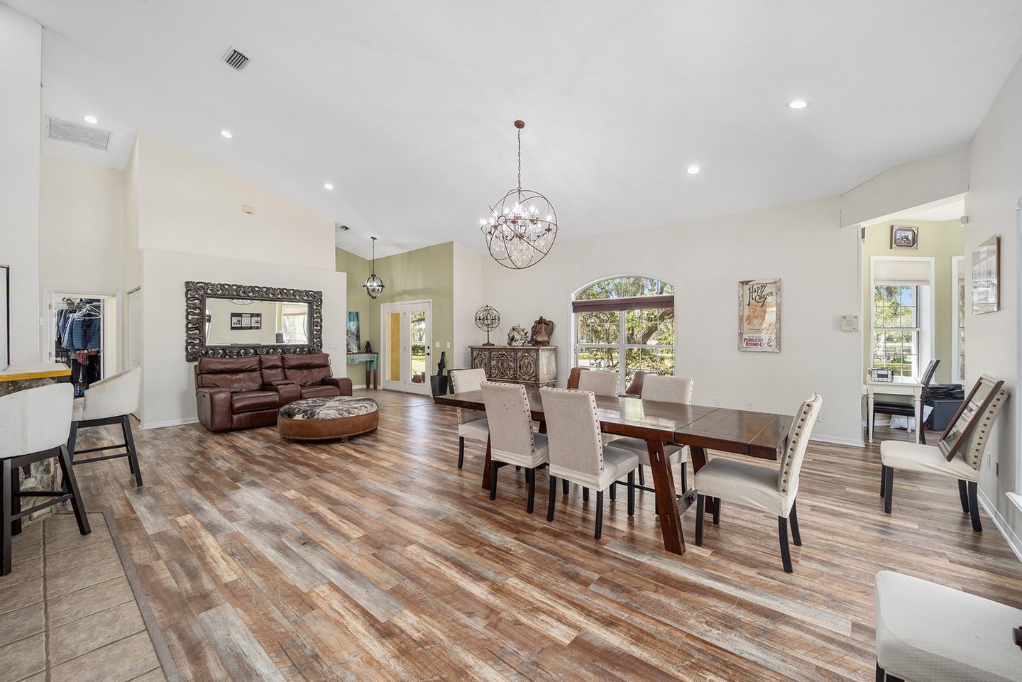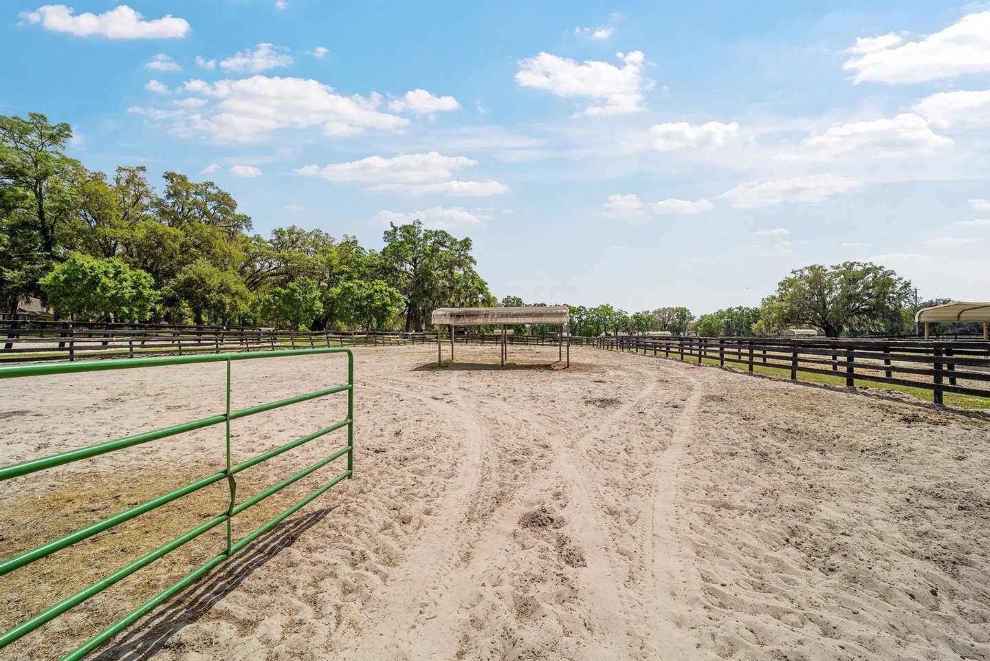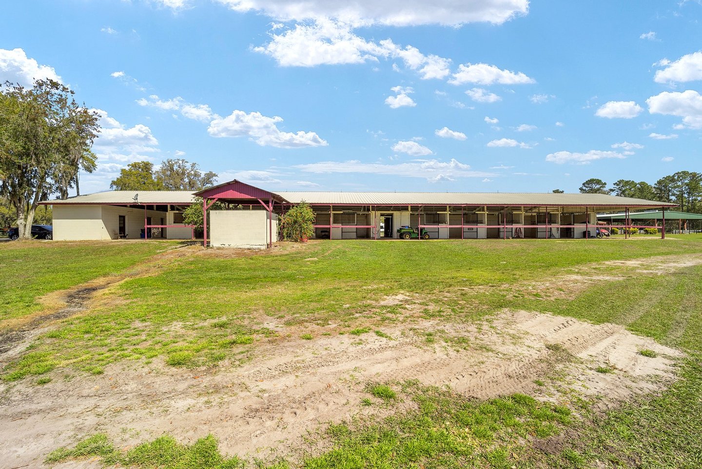 Entdecken Sie das raffinierte Landleben auf der Smokey Willow Farm, wo vier Residenzen 77 Hektar unberührtes Pferdeland neben dem World Equestrian Center ankern. Das durchdacht gestaltete, 3.200 Quadratmeter große Haupthaus verfügt über Kathedralendecken und ein offenes Wohnkonzept mit privaten Büroräumen und umlaufenden Fenstern. Der beheizte Salzwasserpool mit Sprungbrett bietet Entspannung im Resort-Stil, während zu den weiteren Unterkünften ein Cottage des Bauernhofmanagers, ein Mobilheim für das Personal und eine aktualisierte Schwiegersuite mit voll ausgestatteter Küche und Zugang zur Garage gehören. Jenseits des Wohnkomforts verbirgt sich ein Paradies für Reiter: ein schlüsselfertiger Betrieb mit 41 Boxen in drei Ställen, einer überdachten Arena, einer halben Meile Strecke und kompletten Zuchteinrichtungen mit speziellem Stuten- und Fohlenstall. Vom morgendlichen Kaffee mit Blick auf acht große Weiden bis hin zum abendlichen Schwimmen nach der Streckenarbeit bietet dieses Anwesen den Inbegriff des Reitlebensstils Floridas mit Weltklasse-Wettkämpfen vor Ihrer Haustür.