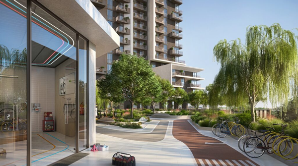 Für Ihre Fitness und Entspannung stehen zahlreiche Annehmlichkeiten zur Verfügung. Sie können auf den Naturpfaden spazieren gehen oder mit dem Fahrrad fahren. Nutzen Sie die Fitnessbereiche im Freien oder entspannen Sie auf den Meditationsdecks und Yoga-Plattformen. Die verschiedenen Pools laden zum Schwimmen ein, während die Splash-Pads und Spielbereiche für Kinder viel Spaß bieten. Für diejenigen, die Abenteuer suchen, gibt es einen Pumptrack und Kletterzonen, einen Skatepark sowie verschiedene Sportplätze wie Paddle Court, Basketball Court und MUGA Court. Im Rhythmusraum können Sie Ihrer Kreativität freien Lauf lassen oder sich in der Mind & Body Bibliothek entspannen. Für die Gamer gibt es sogar einen Game Simulator.