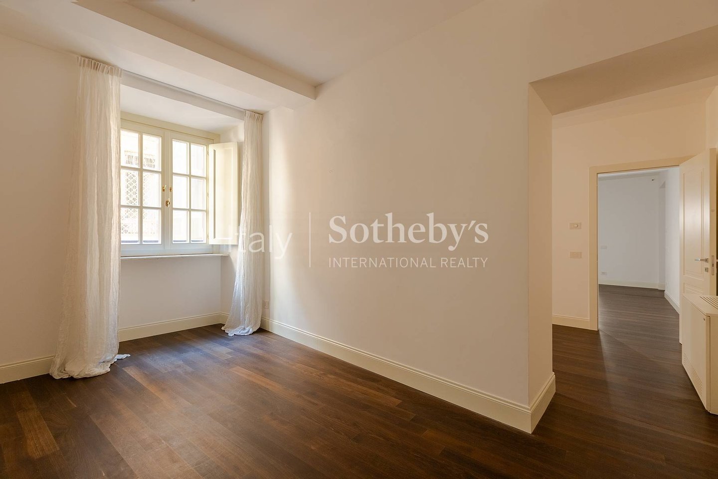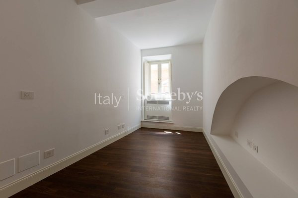 Die nie bewohnte Wohnung mit Parkettböden erstreckt sich über ca. 215 m² und verfügt über eine 27 m² große Terrasse mit Blick auf den begrünten Innenhof des Palazzo Raggi. Mit doppeltem Zugang - sowohl über das monumentale Treppenhaus als auch über den Glasaufzug - bietet die Residenz großzügige Repräsentationsräume: ein helles Doppelwohnzimmer mit Gästebad, eine Master-Suite mit Bad en suite und begehbarem Kleiderschrank, ein weiteres Schlafzimmer mit Bad en suite mit Blick auf die Via del Corso sowie Küche, Essbereich, zusätzlicher Wohnraum und Hauswirtschaftsraum.