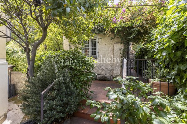 Der Außenbereich wird durch einen prachtvollen privaten Garten von ca. 600 m² aufgewertet, der in mehrere Bereiche gegliedert ist: eine Relaxzone, Spielbereiche, ein gemauerter Barbecue-Bereich mit Außenofen sowie ein separates Gästehaus (Dependance), ideal für Hausangestellte oder Gäste. Abgerundet wird die Immobilie durch einen großen Raum von ca. 148 m², der teils als Doppelgarage, teils als multifunktionaler Bereich genutzt wird. Neue Fenster, Klimaanlage und eine hochwertige Renovierung bewahren den ursprünglichen Charme des Hauses und vereinen ihn mit modernstem Wohnkomfort.
