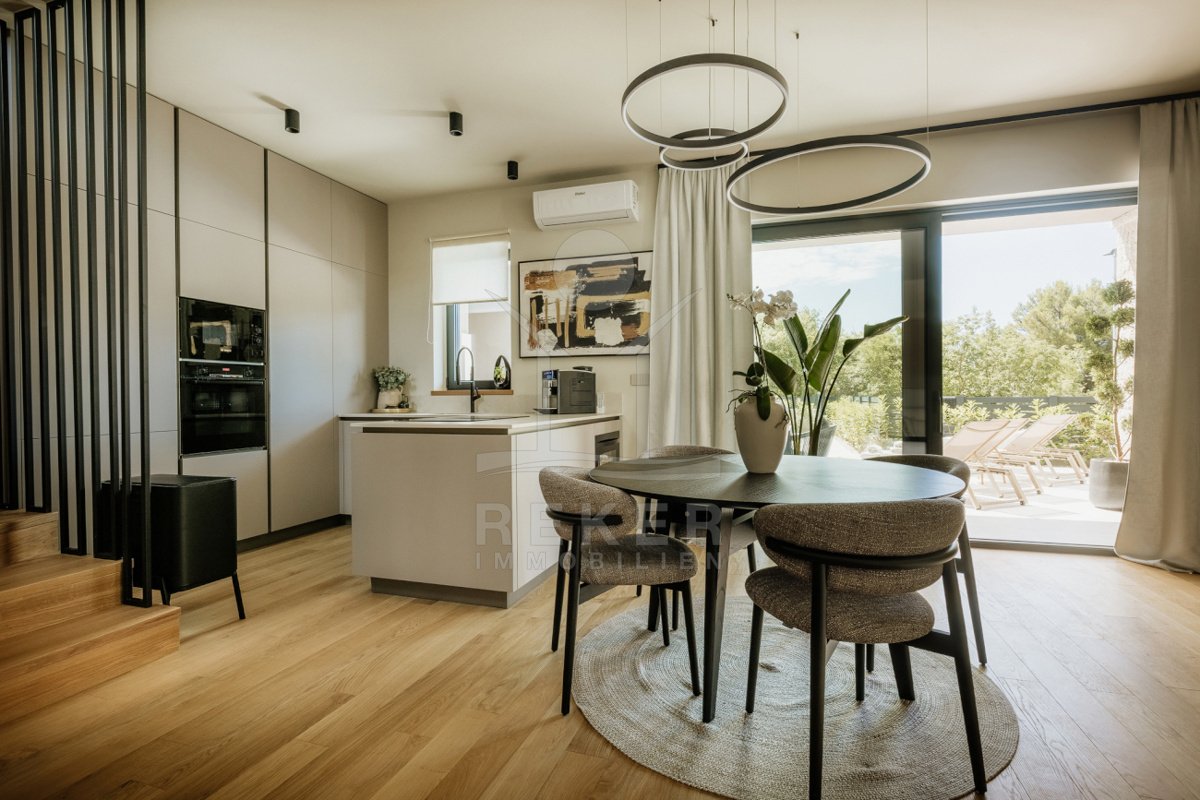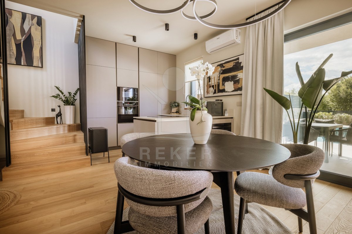Nur wenige Minuten von Poreč entfernt steht dieses moderne Doppelhaus aus dem Jahr 2025. Restaurants, der Strand und alle wichtigen Einrichtungen sind schnell erreichbar. Zugleich genießen Sie hier Ruhe und Privatsphäre. Zwei Stellplätze direkt am