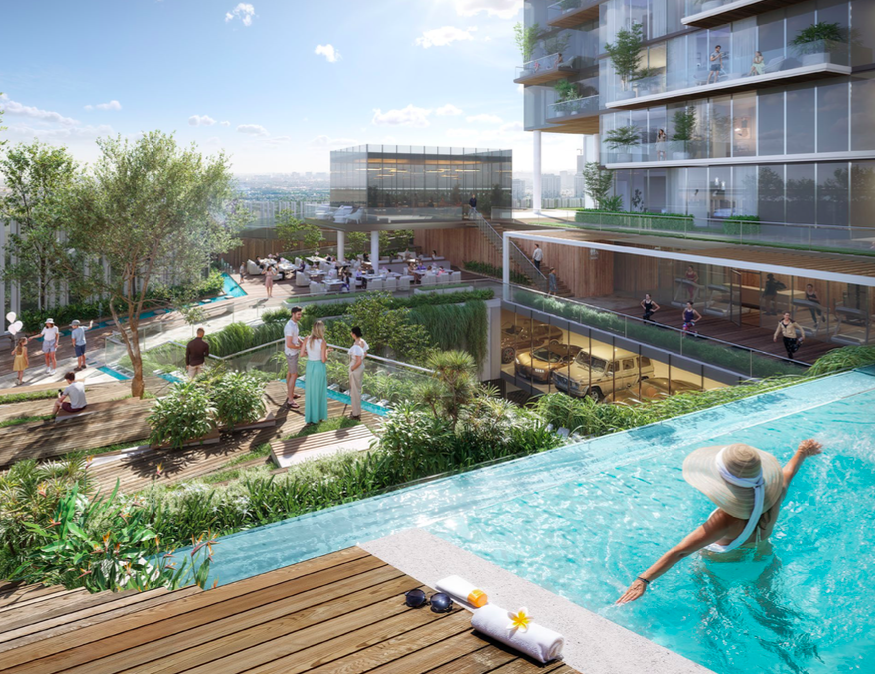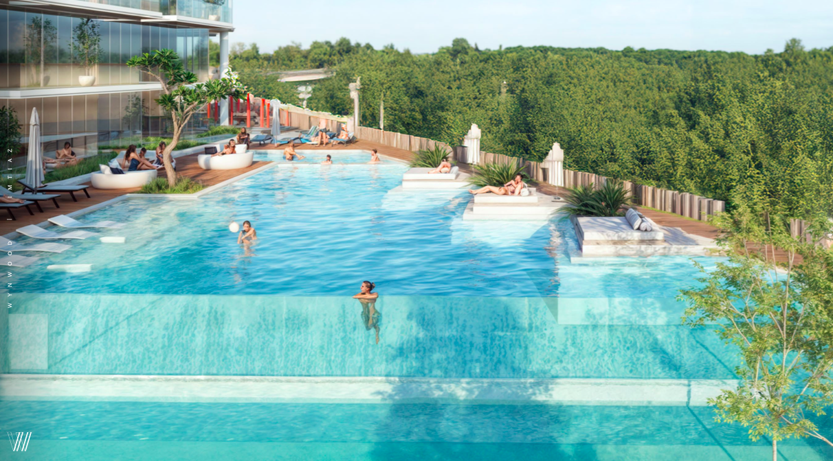 Der imposante Clubhouse bietet Ihnen zahlreiche Annehmlichkeiten, darunter ein modernes Fitnessstudio, in dem Sie sich jederzeit fit halten können. Der Infinity-Pool mit versenkten Sitzgelegenheiten lädt zum Entspannen ein, während Ihre Kinder im separaten Kinderbecken planschen können. Der Spielbereich für die Kleinen sorgt für stundenlangen Spaß und Unterhaltung.