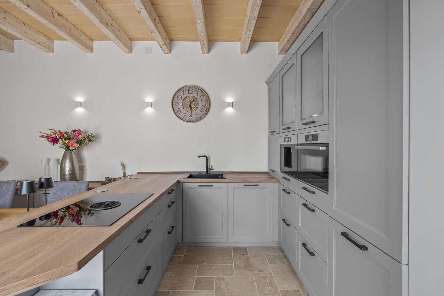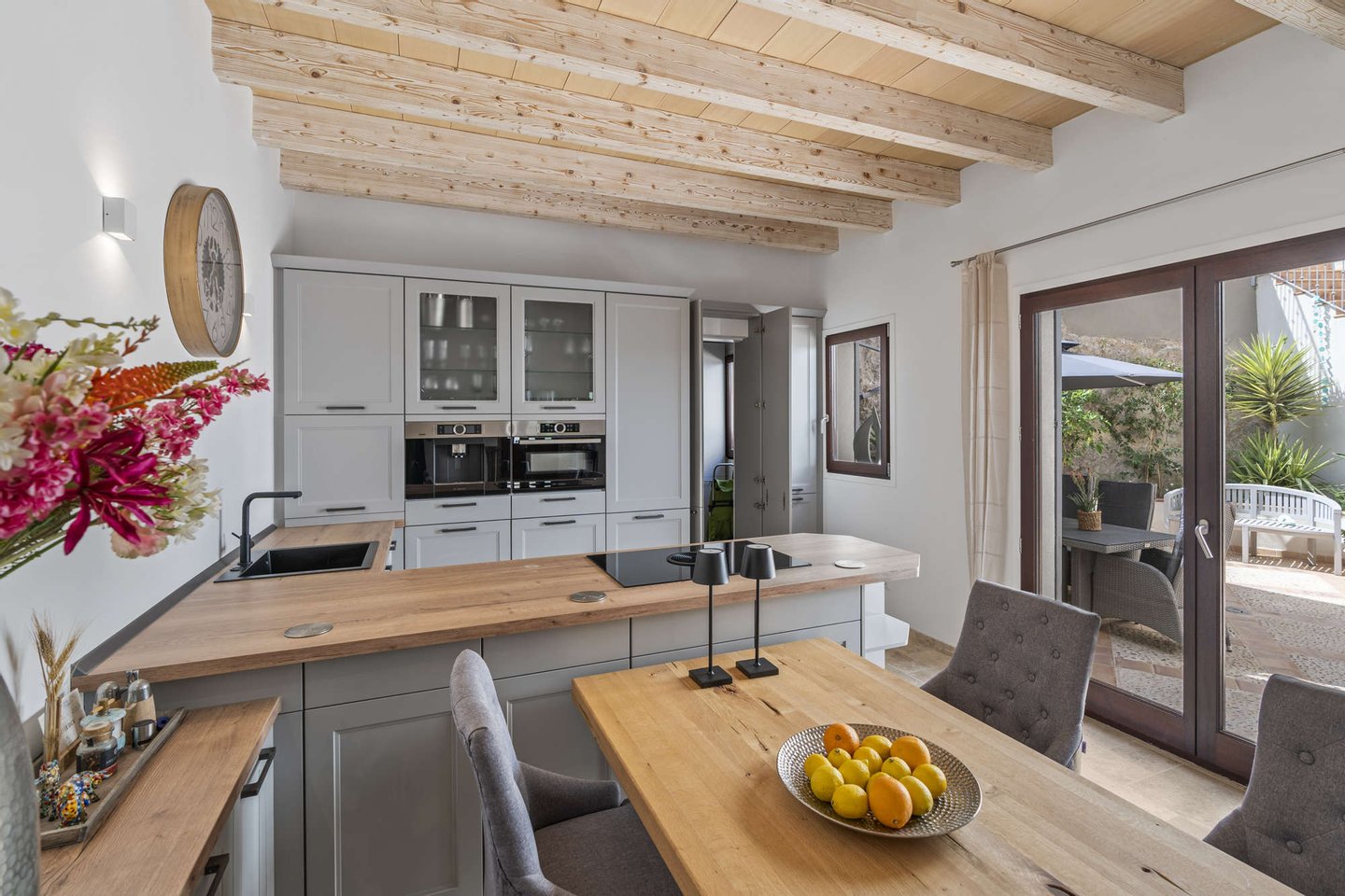 Die voll ausgestattete Küche ist ein Traum für jeden Hobbykoch. Sie verfügt über hochwertige Geräte wie z.B. Bora-Abzug, viel Stauraum und genügend Arbeitsfläche, die das Kochen zum Vergnügen macht. Als Überraschung versteckt sich hier noch ein praktischer HWR...mal sehen ob Sie ihn finden ;-)
