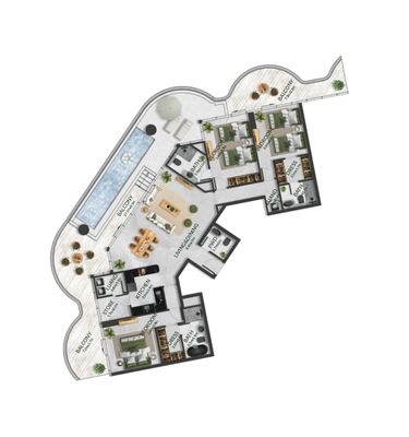 Modernes Apartment mit 3 Schlafzimmern, privatem Pool und stilvollem Design.
