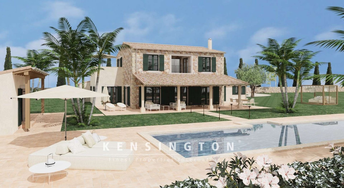 Das aktuelle Baugenehmigung sieht eine zweistöckige moderne Finca mit Natursteinfassade vor: Von einem hellen Eingangsbereich aus wird man linkerhand zwei Schlafzimmer mit Bad en suite erreichen. Im rechten Teil des Hauses wird sich ein grosszügiger Wohn- und Essbereich befinden, der an die moderne Küche mit Hauswirtschaftsraum grenzt und eine Direktverbindung zur Doppelgarage hat. Von jedem Raum im Erdgeschoss aus, wird man Zutritt zum Garten haben. Im Obergeschoss des Hauses sind zwei weitere grosszügige Schlafzimmer, mit Terrasse und ein Badezimmer geplant. Von dieser Ebene aus hat man ebenfalls einen fantastischen Weitblick bis hin zur Ostküste. Der Aussenbereich punktet mit einer grossen überdachten Terrasse und dem vorgelagerten, 70 qm grossen Pool, eingebettet in die mallorquinische Landschaft.