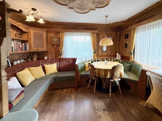 Das Chalet steht auf dem wohl größten privaten Gartengrundstück der Gemeinde und bietet absolute Ruhe und Privatsphäre. Die Wohnfläche von ca. 188 m² (insgesamt ca. 270 m² Nutzfläche) verteilt sich auf drei Etagen und einen ausbaubaren Dachboden. Vier Schlafzimmer, drei Badezimmer, zwei Wohnküchen, eine traditionelle Südtiroler Zirbenstube, Vorrats- und Hauswirtschaftsräume sowie ein großzügiger Keller- und Hobbyraum bieten viel Platz für Familie und Gäste. Die stilvollen Möbel werden komplett übergeben.