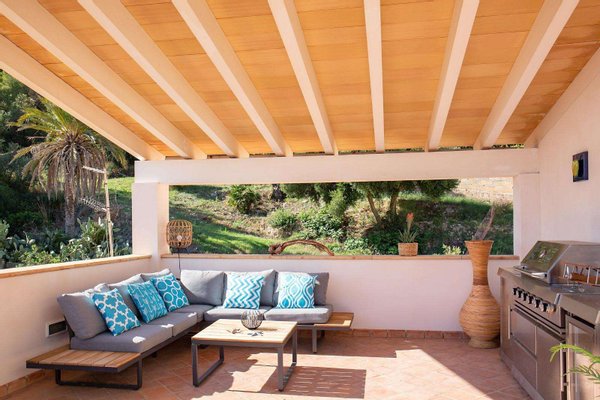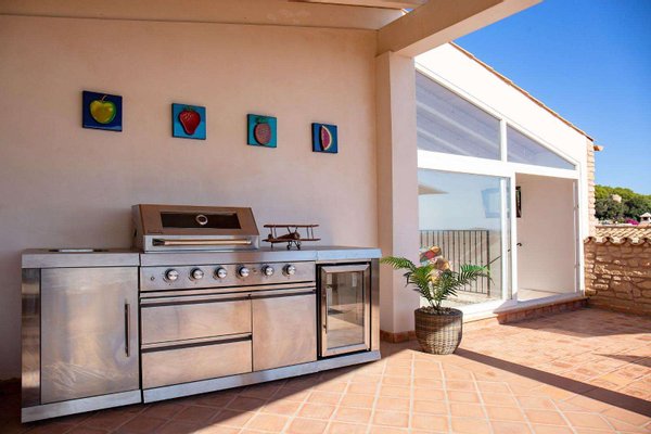 Den krönenden Abschluss bildet die teilüberdachte Dachterrasse im zweiten Obergeschoss. Von hier eröffnet sich ein spektakulärer Panorama- und Meerblick. Die neu installierte Außenküche bietet den idealen Rahmen für stilvolle Abende unter freiem Himmel.