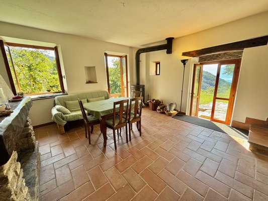 Dieses wunderschöne Naturstein-Rustico befindet sich in der Gemeinde von Dumenza, im Ortsteil Vigana, oberhalb von Colmegna, in reiner Südlage mit einem atemberaubenden Blick auf den Lago Maggiore. Das Rustico hat eine Wohnnutzfläche von ca. 187 qm und ist wie folgt aufgeteilt: EG: heller Wohn-/Essbereich mit offenem Kamin und direktem Zugang auf die Terrasse, Wohnküche, 1 Schlafzimmer und der Technikraum. OG: 2 Schlafzimmer mit Ausgang auf den Balkon und ein Badezimmer mit Dusche und Fenster. Das Grundstück hat eine Größe von ca. 3.930 qm. Mehrere Stellplätze auf dem Grundstück und ein Kellerraum runden dieses Angebot ab. Die laufenden Kosten sind sehr gering, da der Strom und Warmwasser über eine PV-Anlage mit Wärmepumpe und Solarthermie erzeugt werden und der eigene Wald genug Brennholz bietet.