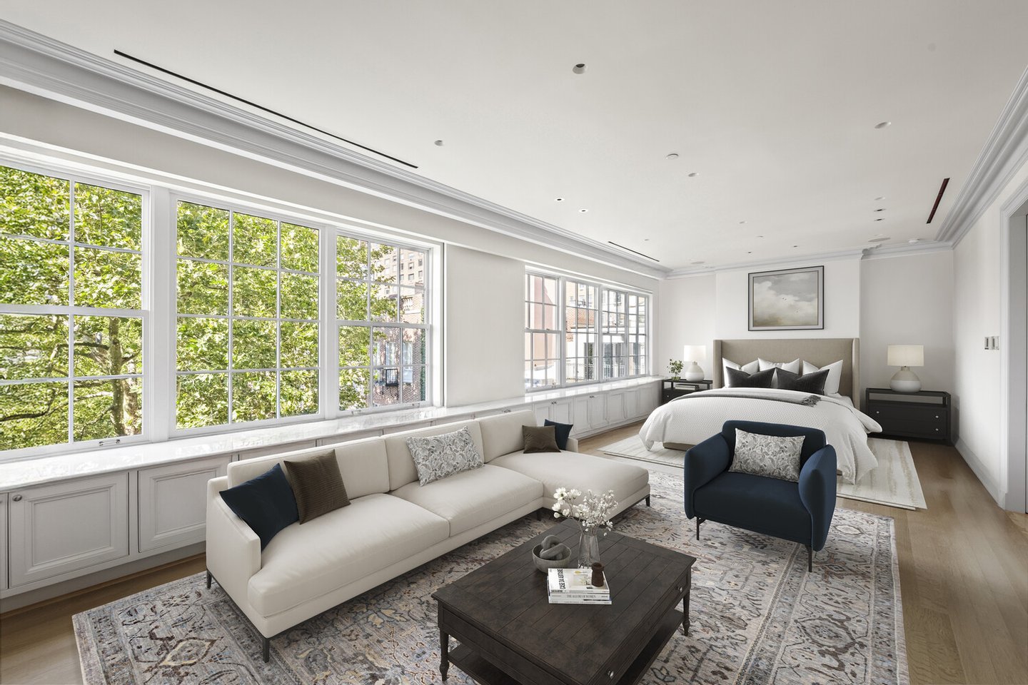 Vielleicht ist die begehrteste Annehmlichkeit des Hauses der Zugang zum Sutton Square Garden – einem 1.000 Quadratmeter großen, privaten, angelegten Park am Flussufer, der ausschließlich seinen Bewohnern vorbehalten ist. Verborgen vor der Stadt und tief in Geschichte verwurzelt, wird dieses Refugium von prominenten New Yorkern geschätzt, darunter auch von einem ehemaligen Generalsekretär der Vereinten Nationen. Kirschblüten, weitläufige Rasenflächen und der ruhige Blick auf die Queensboro Bridge und den East River machen diesen Ort zu einem der magischsten und diskretesten Rückzugsorte Manhattans.
