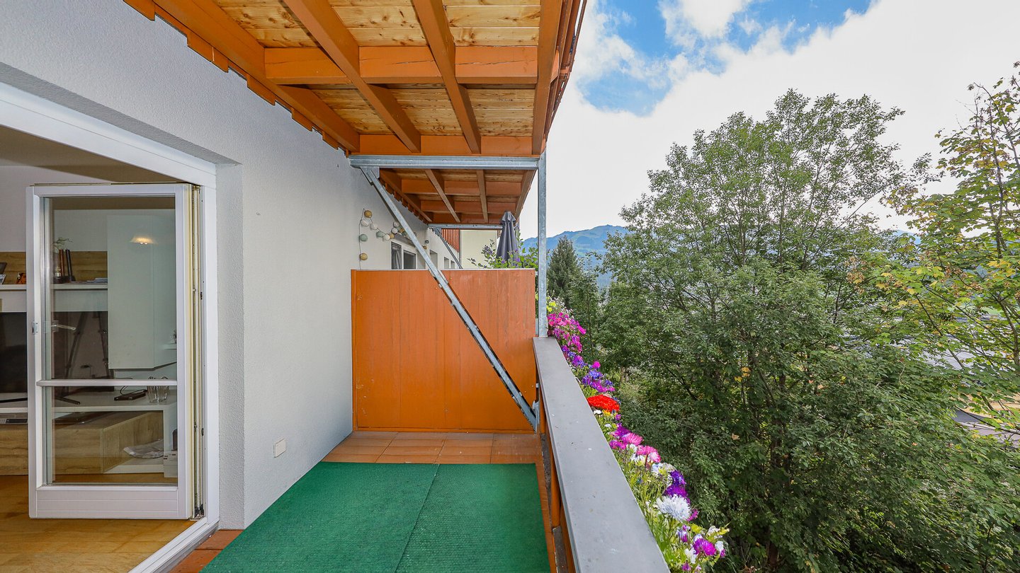 Vom Wohnraum gelangt man auf den Richtung südwesten ausgerichteten ca. 6,4 m² großen überdachten Balkon.