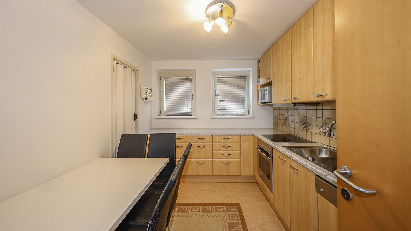 Zubehör sind ein ca. 3,4 m² großes Kellerabteil und ein PKW-Tiefgaragenabstellplatz.