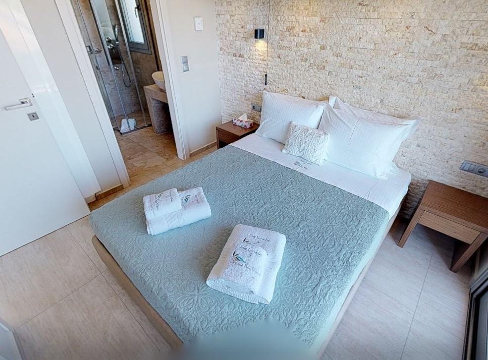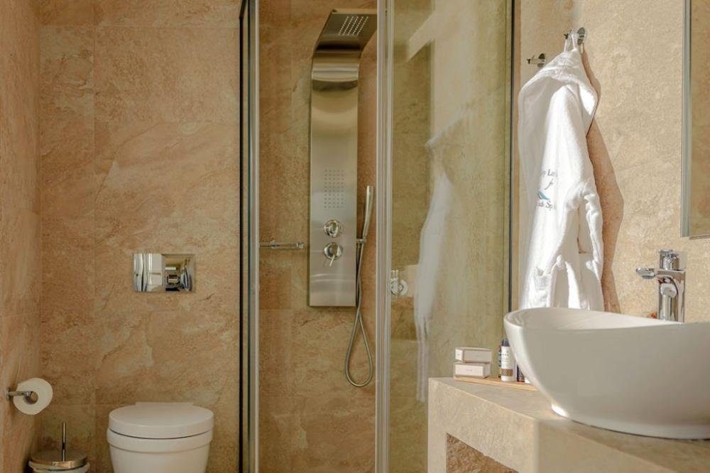 Im Obergeschoss öffnen sich zwei Schlafzimmer mit eigenem Bad zu Veranden und bieten einen herrlichen seitlichen Blick auf die venezianische Festung Spinalonga und das glitzernde Wasser des Golfs von Mirabello. Das Hauptschlafzimmer bietet den zusätzlichen Luxus eines privaten Whirlpools.