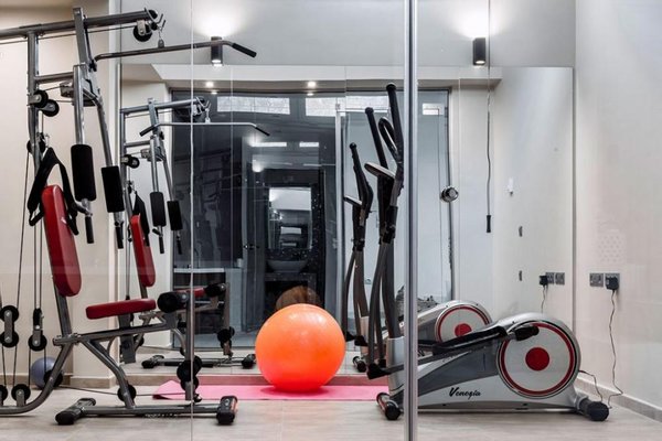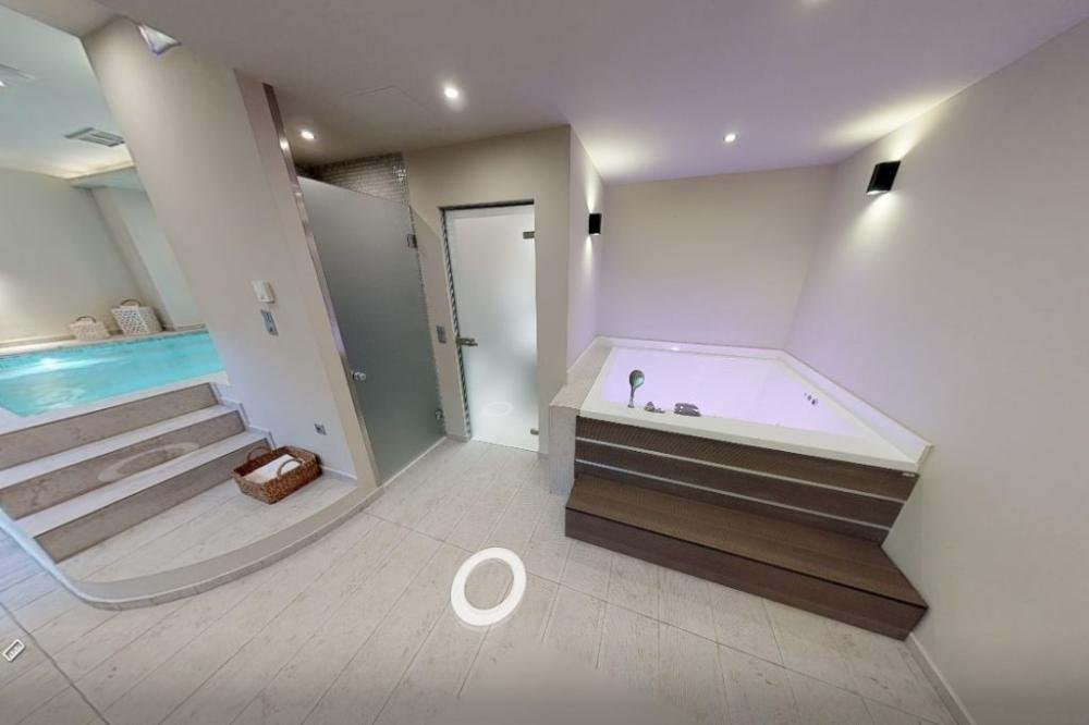 Die untere Ebene ist dem Wellness und der Entspannung gewidmet und verfügt über einen Fitnessraum, einen Wasser-Spa-Therapiebereich, einen beheizten Innen-Whirlpool und einen Hydrotherapie-/Aero-/Farbtherapie-Whirlpool sowie eine Dusche und ein WC.