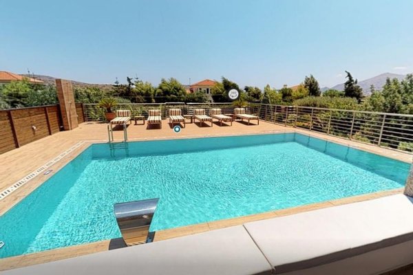 Die Villa verbindet zeitgenössisches Design mit traditionellen kretischen Elementen und bietet ein minimalistisches und dennoch einladendes Interieur. Glasflächen, Holzpergolen und handgefertigte Tore und Zäune aus lokalem Stein verleihen dem Äußeren seinen unverwechselbaren, anspruchsvollen Charakter.