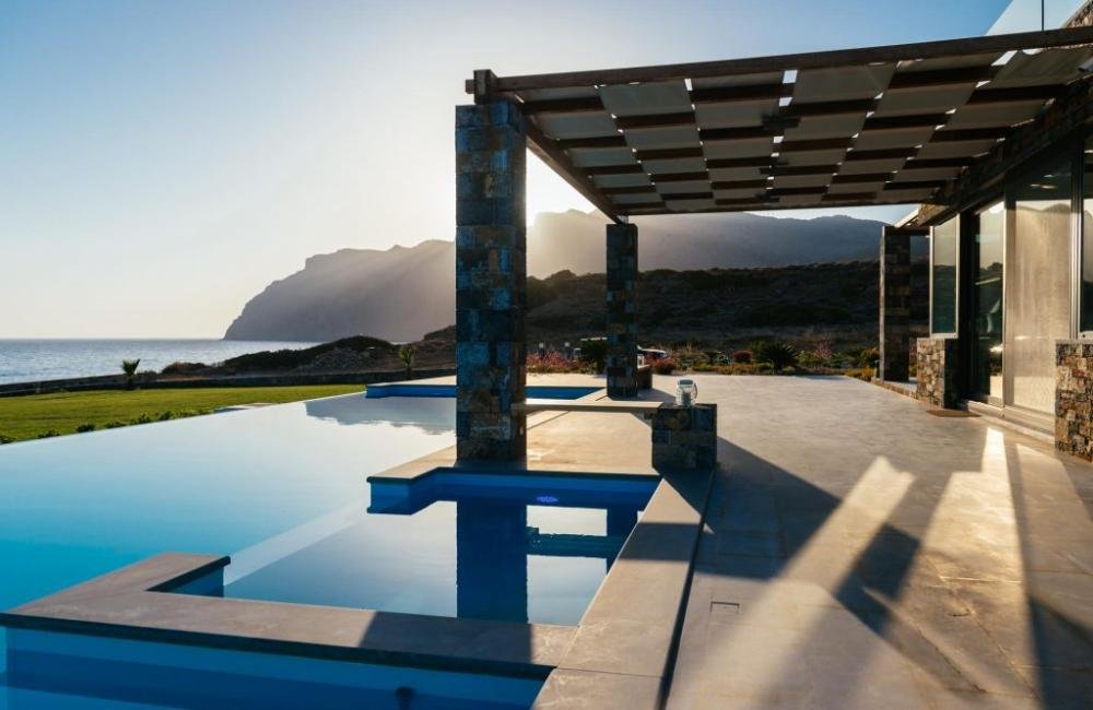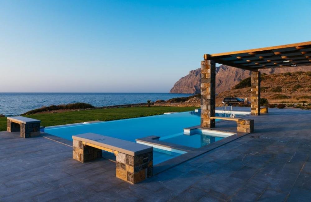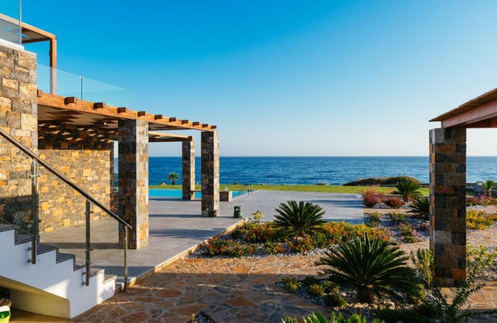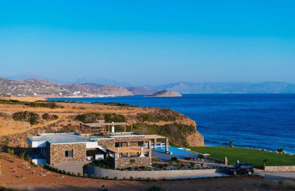Kreta, Mochlos: Einzigartige Villa am Meer mit großem Pool und Gärten zu verkaufen