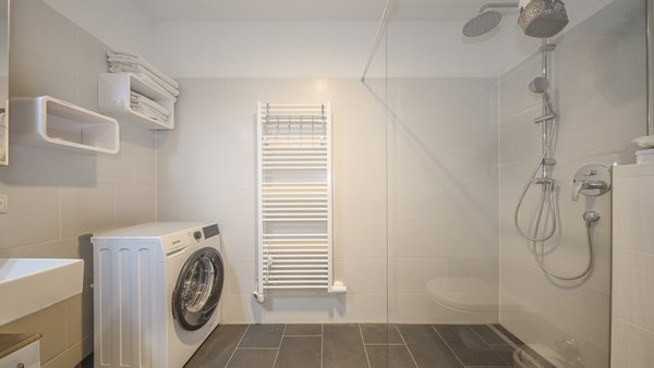 Die Wohnung verfügt über ein komfortables Schlafzimmer mit großem Schrank, ein Badezimmer mit Dusche, Toilette und Waschmaschine.
