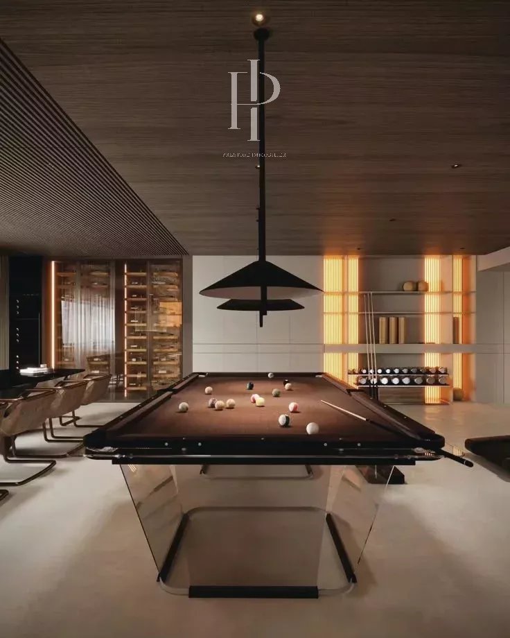Unterhaltungsräume: Heimkino, Weinstube, Zigarrenlounge, Spielzimmer.