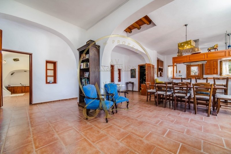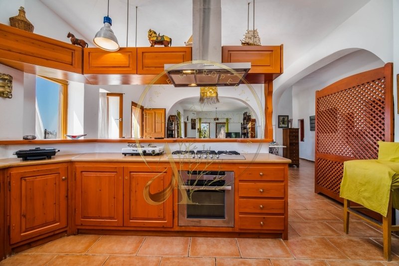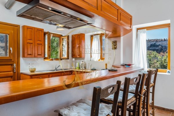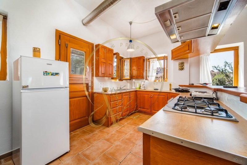 Die Hauptwohnung umfasst vier Schlafzimmer, zwei Wohnzimmer, zwei Küchen, drei Badezimmer und eine WC, während die kürzliche Renovierung 2023 das natürliche Licht und die offene Aussicht voll zur Geltung bringt. Die Materialien, von Holz und Stein bis hin zu modernen Details, erzeugen ein Gefühl zeitloser Qualität. Das Haus verfügt über ein privates Schwimmbad mit ungehindertem Meerblick, einen Garten, Entspannungs- und Unterhaltungsbereiche, einen Kamin, eine Heizung, Klimaanlage, einen Grill und Parkplätze.