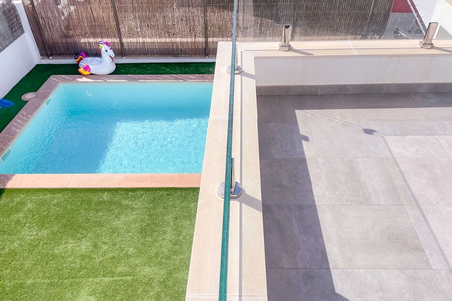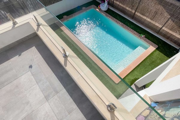 Das großzügige Grundstück umfasst einen großen Pool, der ideal für erfrischende Schwimmrunden an heißen Sommertagen ist. Die gepflegte Gartenanlage lädt zum Verweilen und Genießen der mediterranen Lebensart ein.