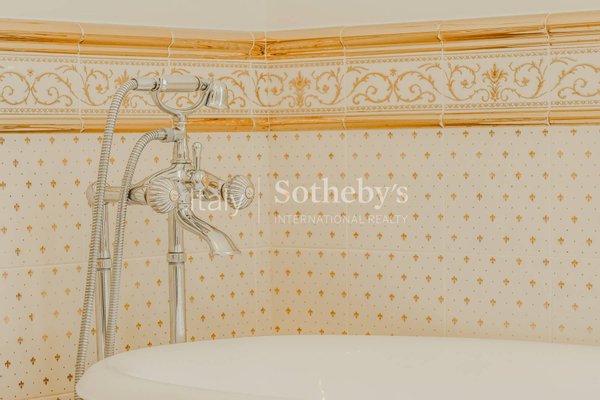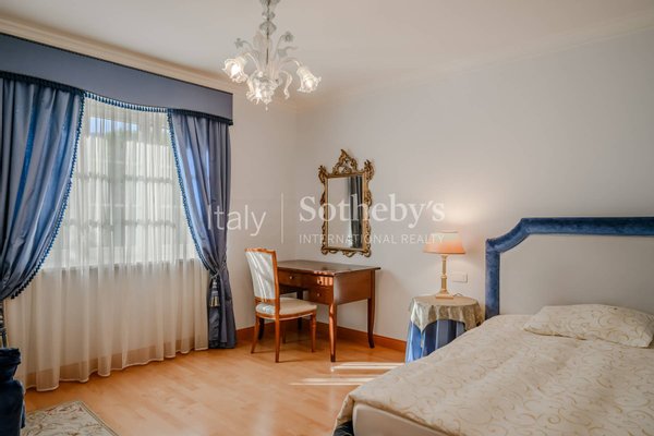 Das Interieur ist ein wahres Meisterwerk der Handwerkskunst. Die in Venedig gefertigten Möbel harmonieren mit Murano-Glas und edlen roten Marmorflächen. Kunstwerke von Bugro Mathe Brocar und weitere napoleonische Antiquitäten verleihen der Villa eine zeitlose Eleganz, die an präraffaelitische Stimmungen erinnert.