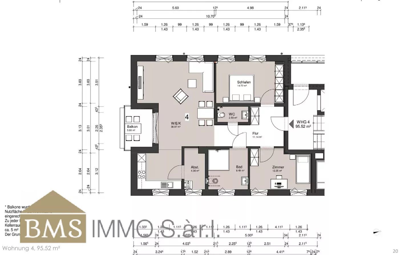 Entdecken Sie diese moderne, lichtdurchflutete Wohnung in Bollendorf mit einer Fläche von 95 m². Die Raumaufteilung umfasst zwei großzügige Schlafzimmer und einen offenen Wohnbereich, der ausreichend Platz für individuelle Gestaltung bietet. Große