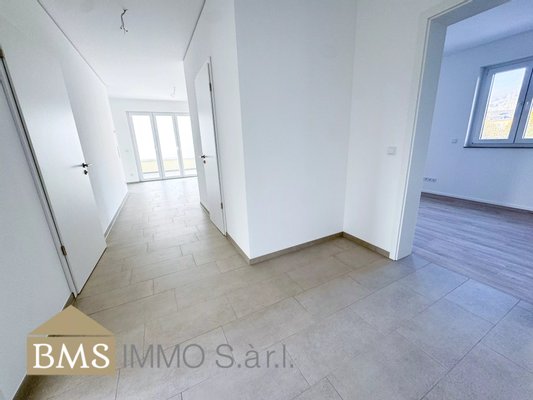 Entdecken Sie diese moderne, lichtdurchflutete Wohnung in Bollendorf mit einer Fläche von 95 m². Die Raumaufteilung umfasst zwei großzügige Schlafzimmer und einen offenen Wohnbereich, der ausreichend Platz für individuelle Gestaltung bietet. Große Fenster mit Dreifachverglasung sorgen für eine hervorragende Wärmedämmung und lassen viel natürliches Licht herein.