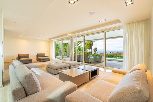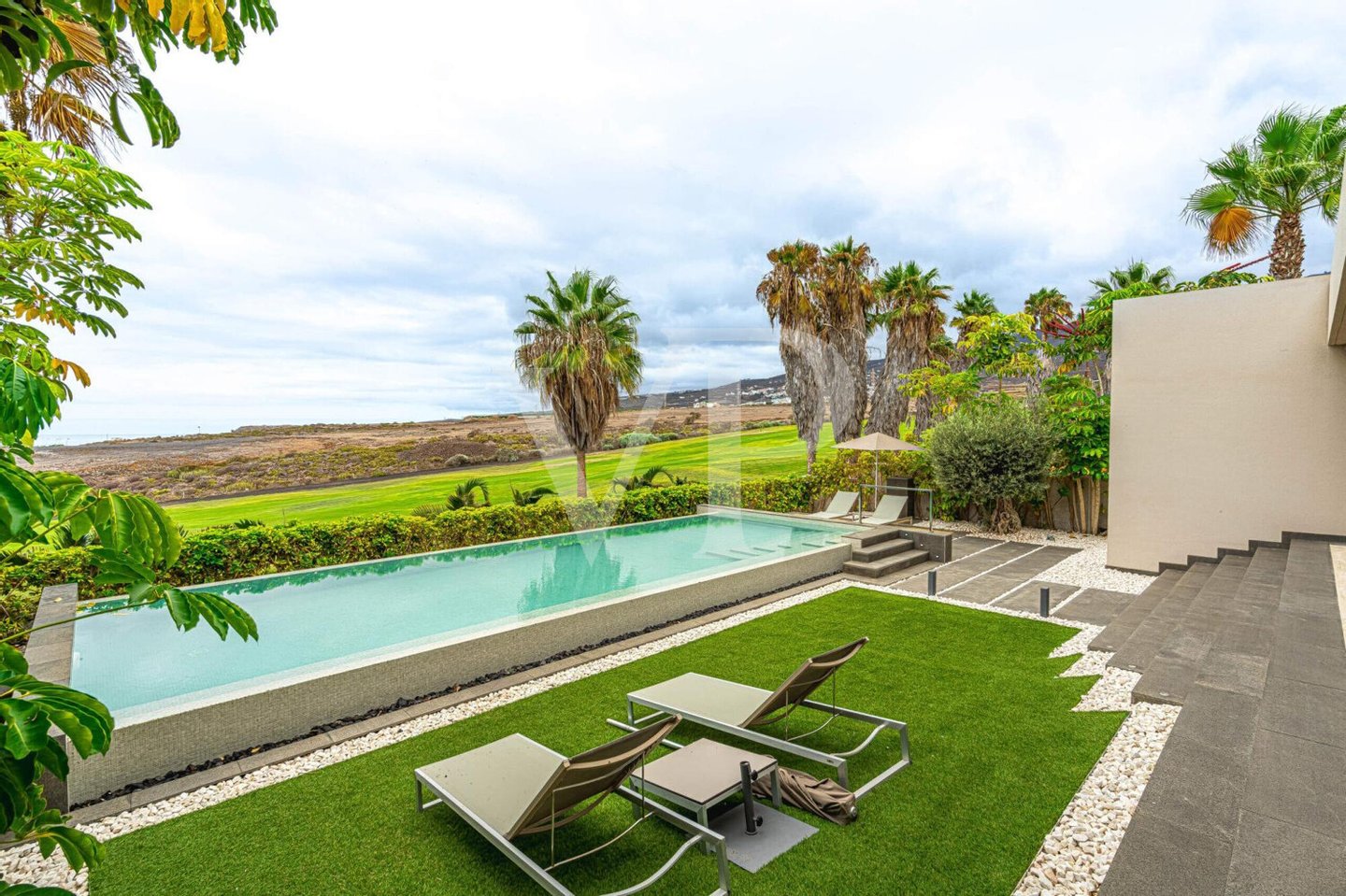 Diese beeindruckende Luxusvilla mit Infinity Pool liegt direkt am Golfplatz Costa Adeje. Dieses Anwesen erstreckt sich über drei Etagen mit insgesamt fünf Schlafzimmer und vereint Luxus, Komfort & Technologie. Das Untergeschoss bietet eine