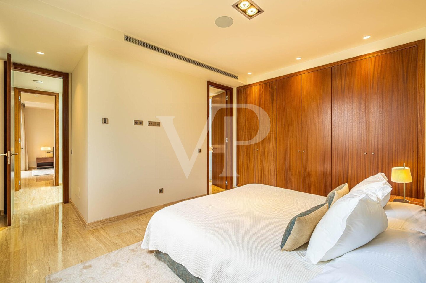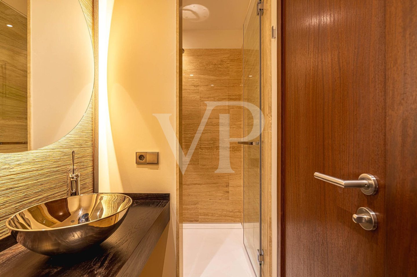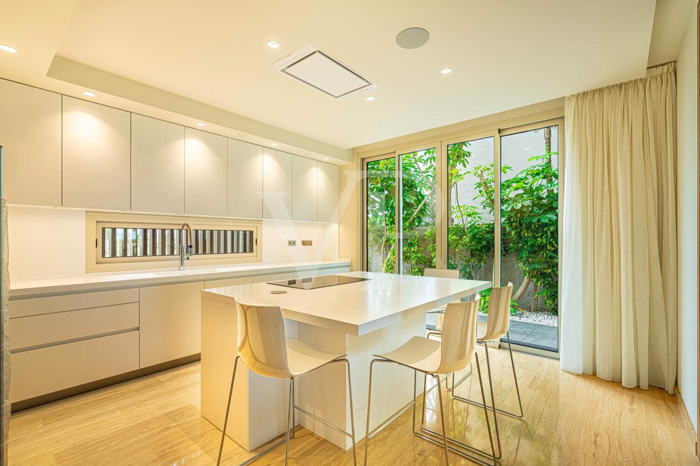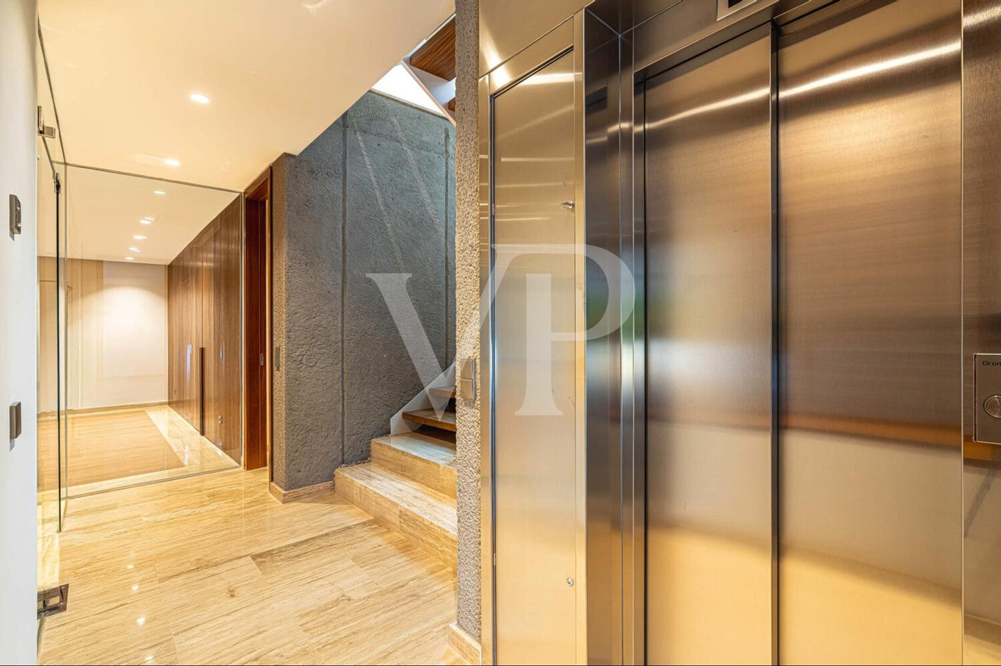 Diese beeindruckende Luxusvilla mit Infinity Pool liegt direkt am Golfplatz Costa Adeje. Dieses Anwesen erstreckt sich über drei Etagen mit insgesamt fünf Schlafzimmer und vereint Luxus, Komfort & Technologie. Das Untergeschoss bietet eine Eingangshalle, ein Gästezimmer mit eigenem Bad, eine Waschküche, einen großen Fitnessraum, ein Duschbad, eine Sauna, einen Abstellraum und eine große Garage für zwei Autos. Das Erdgeschoss ist über eine Treppe und einen Aufzug erreichbar und verfügt über ein helles Gästezimmer sowie eine voll ausgestattete Gourmetküche mit hochwertigen Geräten und einer Mittelinsel. Es bietet Zugang zu einem unglaublichen Esszimmer und Wohnzimmer mit großen Fenstern. Eine überdachte Terrasse führt zum Infinity-Pool. Die obere Etage bietet zwei Gästezimmer mit eigenem Bad. Außerdem gibt es eine majestätische Master-Suite mit Ankleidezimmer, Badezimmer mit Dusche, einer fantastischen Badewanne mit Meerblick und einer großen privaten Terrasse. Diese Immobilie bietet einen exklusiven Lebensstil in atemberaubender Umgebung und Eleganz in bester Lage.