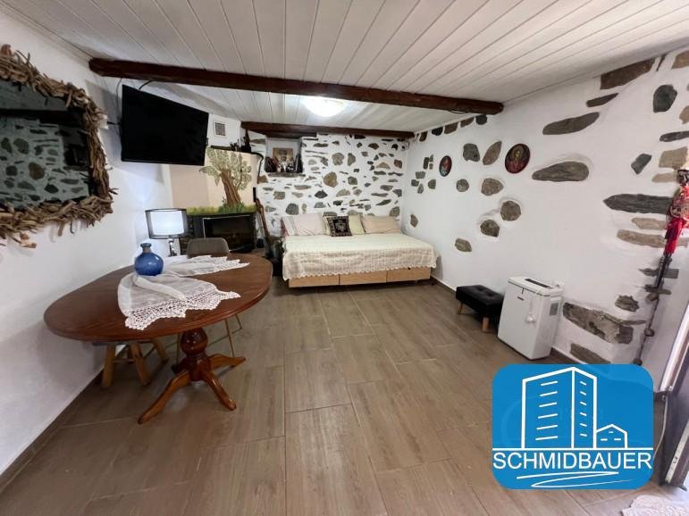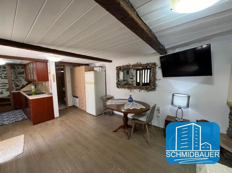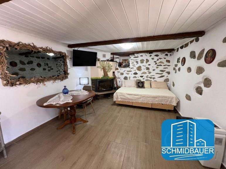 Charmantes, wunderschön renoviertes Steinhaus in Grigoria. Inmitten der traditionellen Gassen des Dorfes gelegen, wird dieses Anwesen die Besucher begeistern. Das Haus mit einer Gesamtfläche von 72 m² erstreckt sich über zwei Etagen und verfügt über einen schönen Garten mit Sitzecken im Freien. Beim Betreten des Hauses finden wir ein gemütliches Wohnzimmer mit Kamin und eine voll ausgestattete Küche mit Bad. Eine Holztreppe führt uns in die obere Etage, wo wir zwei komfortable Schlafzimmer mit einem gemeinsamen Balkon und Blick auf den Innenhof vorfinden. Vom Balkon aus haben wir Zugang zu einem weiteren Eingang des Hauses, während ein kleiner Abstellraum ausreichend Platz bietet. Außerhalb des Hauses gibt es einen zweiten Abstellraum und einen geräumigen Innenhof, der Privatsphäre bietet, während ein traditioneller alter Ofen und ein Kamin zum Zubereiten von Mahlzeiten geeignet sind.