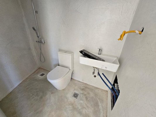 Vom Haupteingang des Komplexes aus finden Sie auf der linken Seite das erste Gebäude, das aus einem Einzelzimmer mit Waschbecken und Toilette besteht.